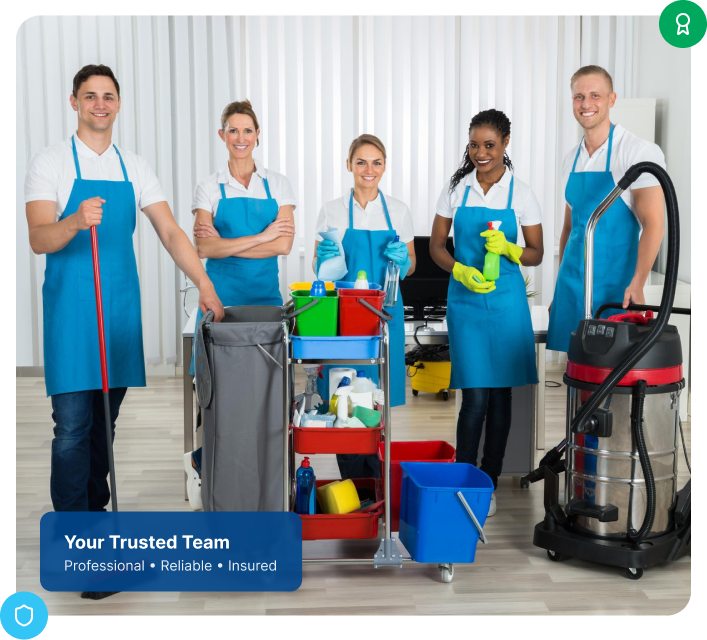 Includes: Daily/weekly cleaning, restroom deep cleaning & sanitation, commercial-grade floor care, and supply restocking.